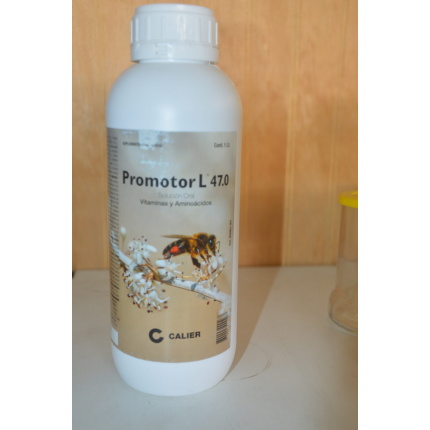 Promotor L® se utiliza como bioestimulante y energizante que se utiliza en la alimentación de cámara de cría, núcleos en los períodos de bajo ingreso de polen y néctar. Es un suplemento alimentico con una solución compuesta por vitaminas y aminoácidos par su uso como suplemento o complemento de la dieta. Mejora el rendimiento en los períodos de incentivación, por estimulación de la postura de la reina.